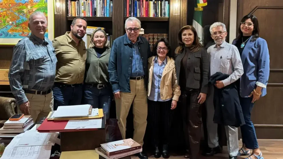 Culiacán, Sinaloa, a 9 de enero de 2026.- El gobernador Rubén Rocha Moya recibió en su despacho de Palacio de Gobierno, a la rectora de la Universidad Rosario Castellanos, Alma Herrera Márquez, y al secretario general de esta institución, Antonio Méndez Hernández, para anunciar que este año 2026 iniciará su oferta educativa en Sinaloa esta nueva alternativa de educación superior para las y los jóvenes sinaloenses.