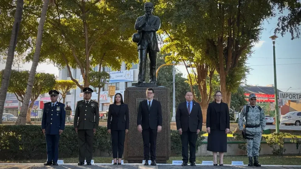 *El Secretario de Obras, Raúl Montero Zamudio presidió el acto cívico en representación del Poder Ejecutivo.