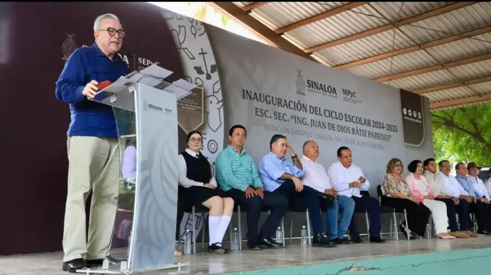 *El mandatario estatal puso en marcha el ciclo escolar 2024-2025 en la Escuela Secundaria Juan de Dios Bátiz Paredes en Estación Naranjo, Sinaloa municipio