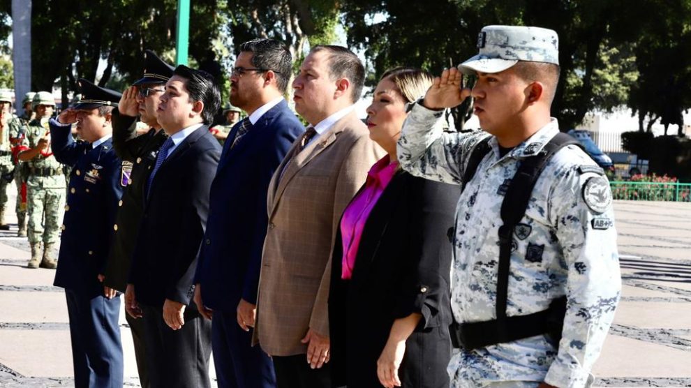 Culiacán, Sinaloa, 22 de mayo del 2023.- Autoridades civiles y militares conmemoraron el aniversario luctuoso número 121 de Don Mariano Escobedo con un izamiento de bandera a media asta y con honores de ordenanza en la plaza cívica de Palacio de Gobierno. En representación del gobernador...